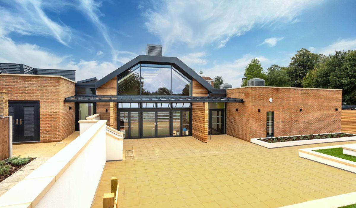 This new building provides specialist music classrooms, music practice rooms, a music performance space for concerts and new changing rooms for the existing swimming pool.