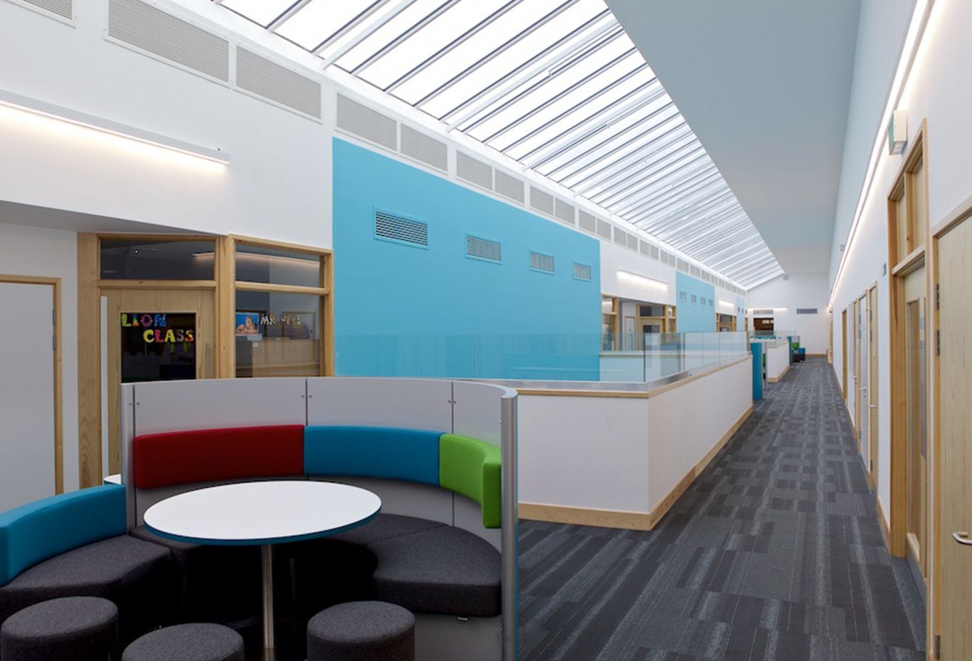 This new build project also houses a new staff room, main hall and Discovery Centre for learning and links to infant and junior spaces to create a single learning environment.